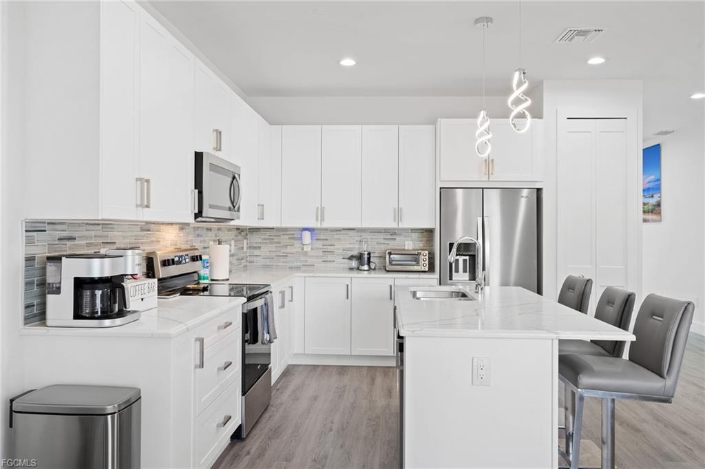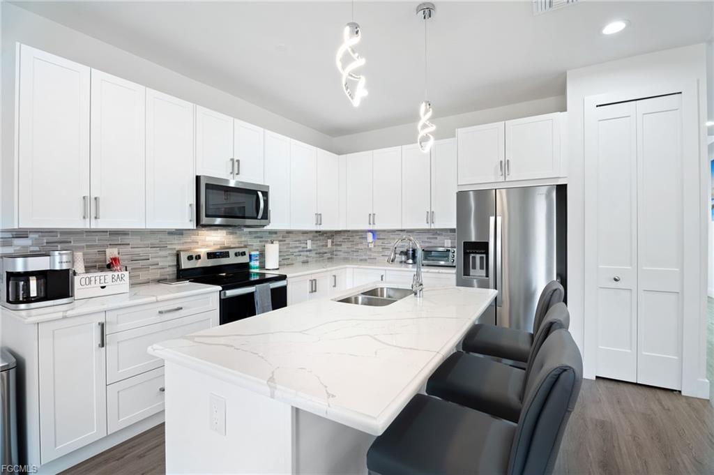 Welcome to this beautiful 2 story townhome in Marina Villas located in the Cape Harbour Luxury Marina. This impeccable unit is 3 bedroom, 2 1/2 bath, 2 car garage, with approximately 1775 sq. ft. of space. Located next to the Funky Fish Houses, the townhome is walking distance to all Cape Harbour has to offer: shops, restaurants, live entertainment and a marina. Enjoy resort-style amenities including two community pools, gym, tennis courts, and clubhouse just a short drive away. Modern features in the open concept kitchen and new furniture make living easy in this well-equipped unit. Relax in the gorgeous master bedroom (King) that features an en suite bathroom. Guest bedrooms feature 2 Double beds with an upstairs laundry. The well-equipped kitchen has a large countertop that seats 3 in addition to the dining room with space for 4 more. There is a fee to apply to the Home Owners Association (HOA). Please allow 2 weeks for the approval process. Enjoy resort-style amenities including two community pools, gym, tennis courts, and clubhouse just a SHORT DRIVE AWAY.