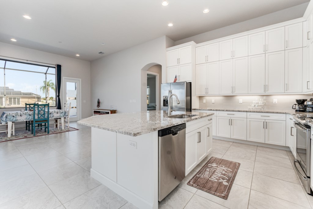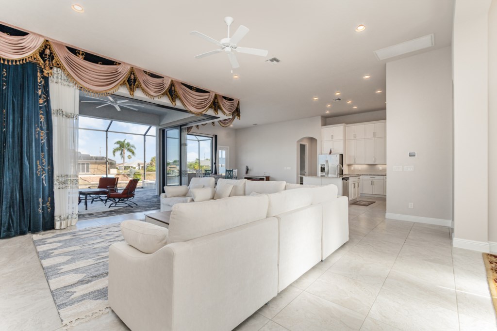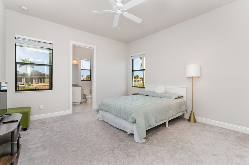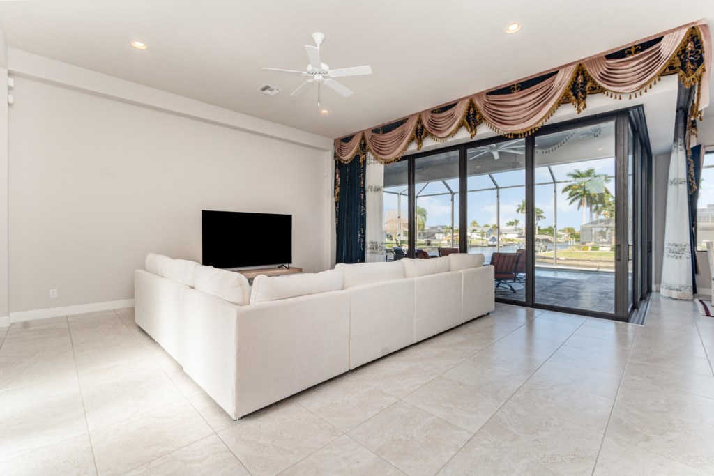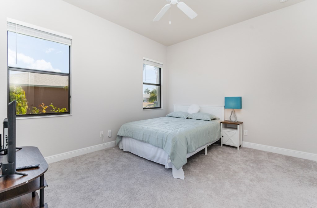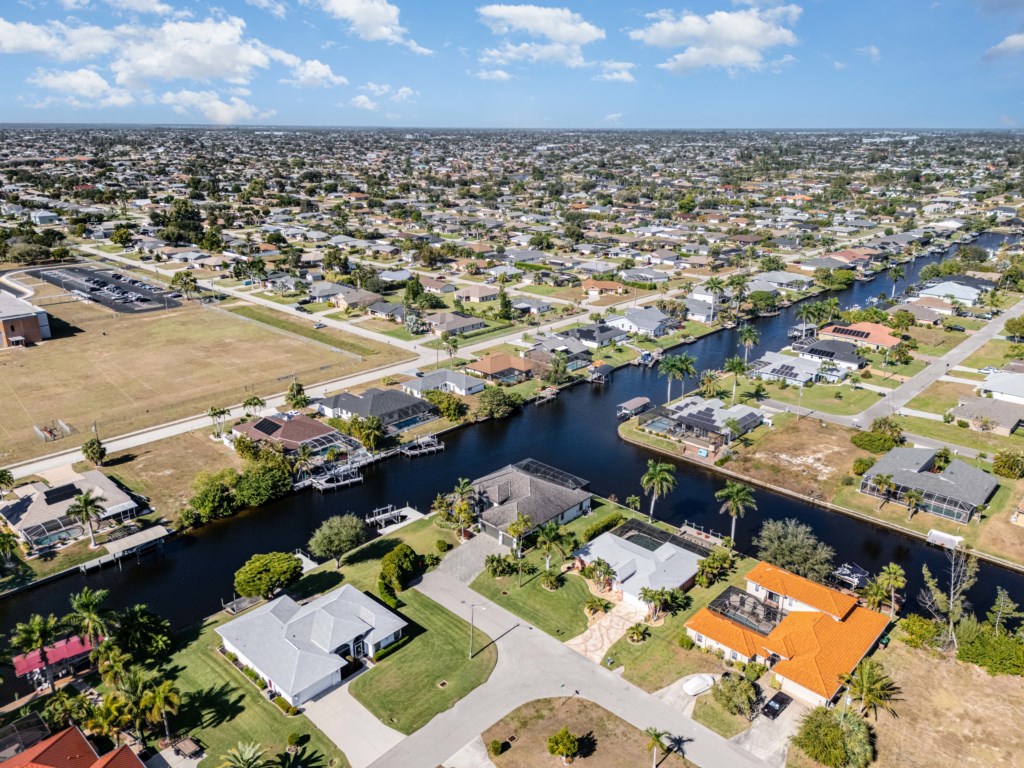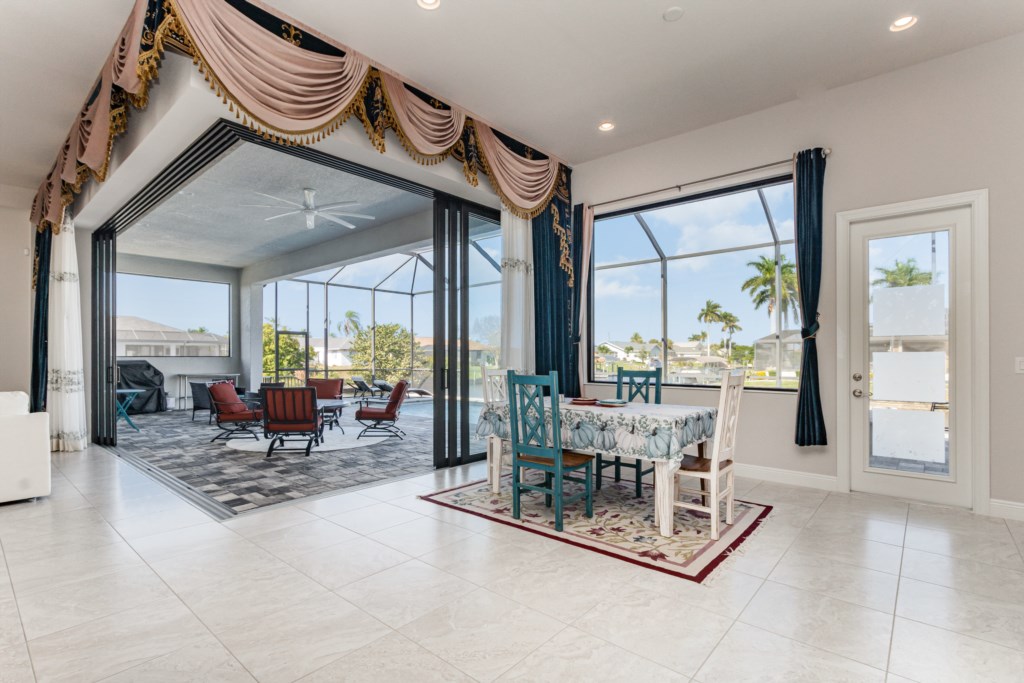 Regency meets the tropics in this new gem in the SW Cape on the intersection of two gulf access canals. This 2,642 sq. ft. waterfront dream home features a formal living room plus a large dining area with amazing water views. Lounge by the crystal clear heatable pool or pop into the hot tub for a peaceful soak. Grab a drink and fire up the BBQ for the ultimate Florida backyard living experience. Lounge out on the dock for wildlife viewing – right from your own backyard! Unwind in the luxurious tub in the master bath or rent a boat for an adventure over to Sanibel Island. Cozy up in front of one of the TVs to stream your favorite series. 3 bedrooms and 3 full baths sleep up to 6 people for a vacation you can enjoy with family and friends. Grab your slice of paradise and create lasting memories in this well-equipped, luxurious home in Cape Coral – Blue Haven! Pool/spa heat is $25/day or at a reduced rate for stays over 30 days.
